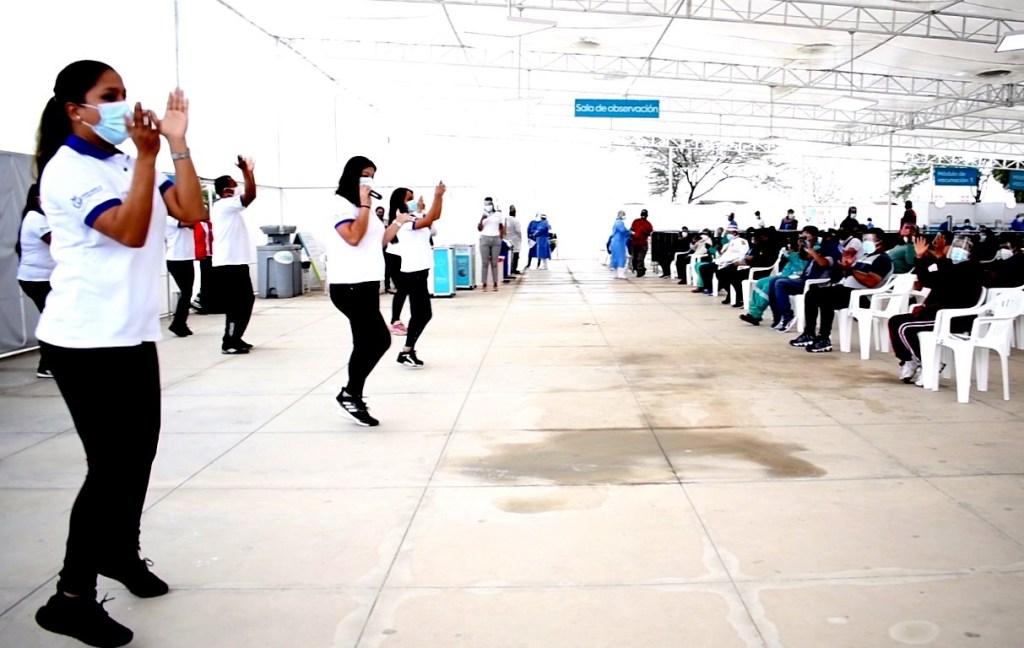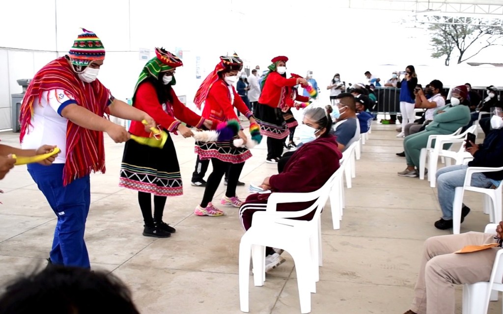 Para promover una adecuada salud mental entre los asistentes a los centros de vacunación contra la COVID-19, la Gerencia Regional de Salud Lambayeque, despliega profesionales en psicología, quienes a través de danzas y actividades educativas, llevan alegría y entretenimiento que aportan en el bienestar de aquellos que esperan o ya han recibido su dosis del fármaco.