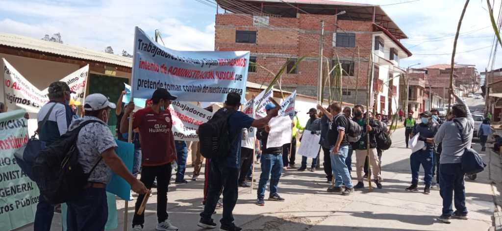 Un grupo de trabajadores de la azucarera Pomalca protestaron en el frontis de la Corte Superior de Justicia de Amazonas, luego que tomaran conocimiento que se ejecutaría una medida cautelar de administración judicial en la empresa, la misma que iba a ser dada por el juez Edinson Polo Huamán, titular del Juzgado de Paz Letrado de la Provincia de Luya.