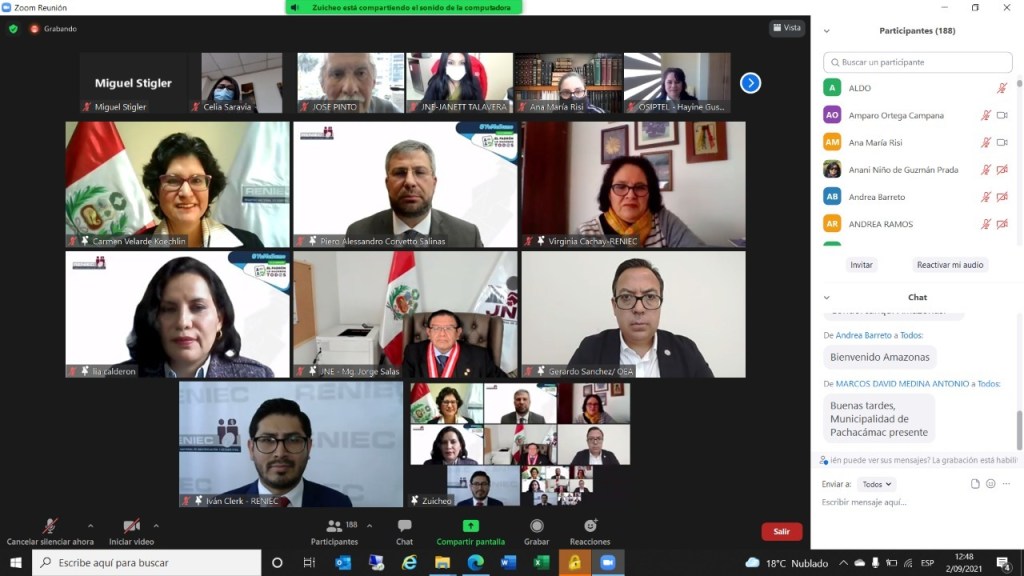 El evento virtual de presentación de la plataforma y la campaña contó con la participación de la jefa nacional del RENIEC, Carmen Velarde Koechlin, el jefe del Jurado Nacional de Elecciones (JNE), Dr. Jorge Salas Arenas, el Jefe de la Oficina Nacional de Procesos Electorales (ONPE), Piero Corvetto Salinas y Gerardo Sánchez, representante de la Misión en Perú – OEA.