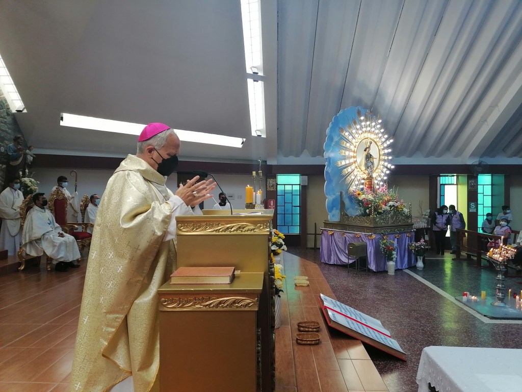 Previamente saludó la presencia de decenas de peregrinos de diversos lugares de Lambayeque y el país, que caminaron durante tres horas desde Monsefú hasta Ciudad Eten, portando la imagen del “Niño Peregrino” así como una Biblia hecha en madera de 1.20 m de ancho por 85 cm de alto. Todos llevaban banderitas y los niños sus capitas con la imagen estampada del Niño. El obispo enfatizó que la fe no es una cosa privada. “La fe es algo que debemos compartir. Y Dios cuando nos llama a ser peregrinos, nos invita a participar en la vida de la iglesia, que siempre quiere ser esa presencia viva de Jesucristo en el mundo”.