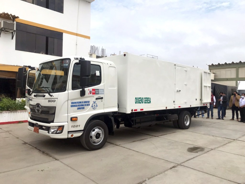 Como parte de las acciones de lucha contra la COVID-19, el Gobernador Regional de Lambayeque, Abog. Luis Díaz Bravo, supervisó la llegada del camión baranda a la Gerencia Regional de Salud, con capacidad para trasladar de 80 a 100 balones de oxígeno. La adquisición es parte del proyecto de inversión para el centro de salud Cerropón, donde, además, se instalará una planta de oxígeno.