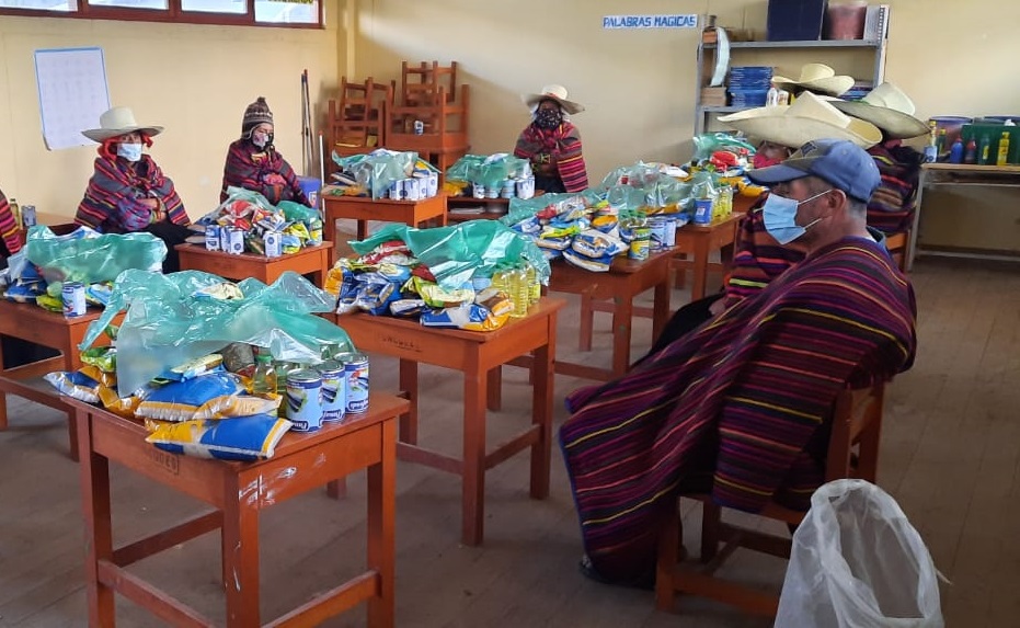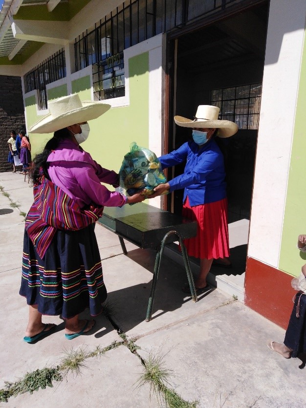 Los comestibles entregados son arroz fortificado, conserva de pescado, aceite vegetal, azúcar rubia, leche evaporada, lentejas, hojuelas de avena con kiwicha, que son preparados por las madres y padres para complementar la nutrición escolar.