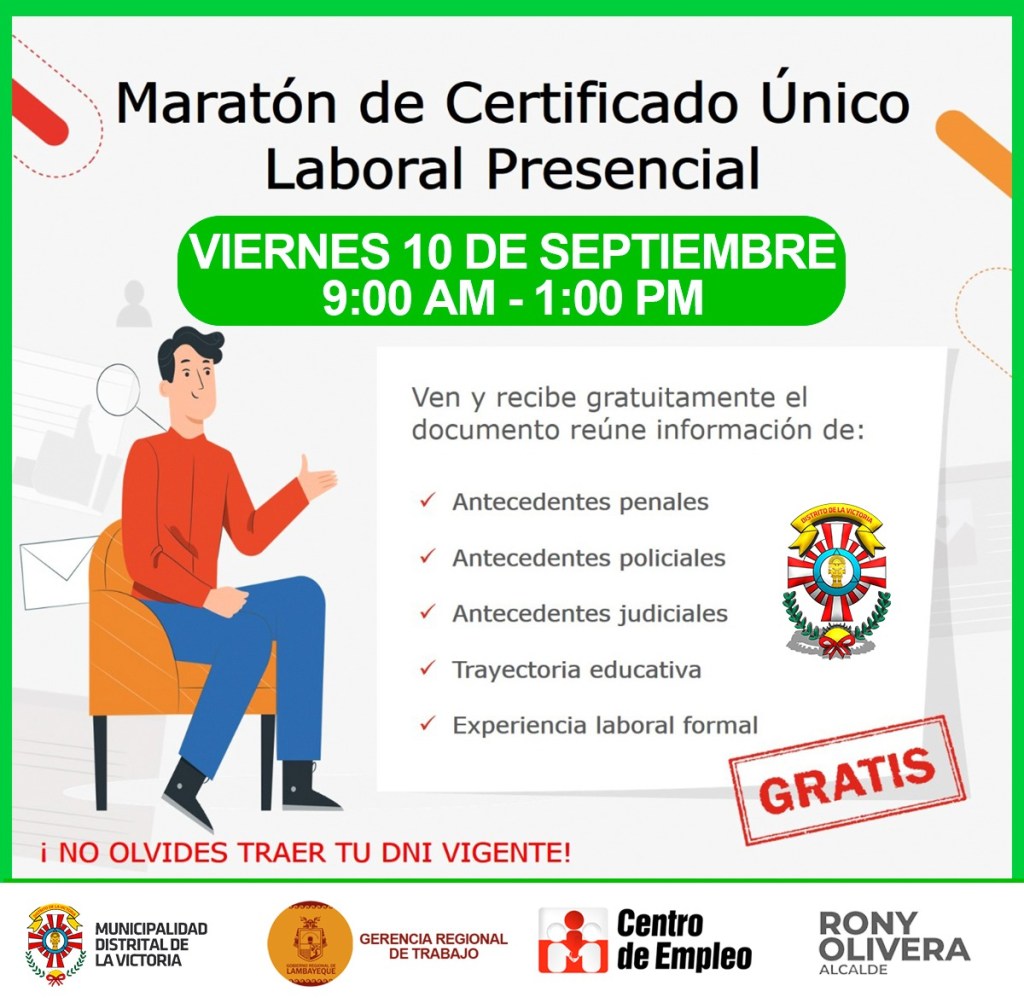 Se hace un llamado a todos los jóvenes victorianos y de la región Lambayeque, a fin de participar de esta maratón del empleo, que les permitirá obtener estos documentos gratuitos, y a fin de asegurar un empleo formal.