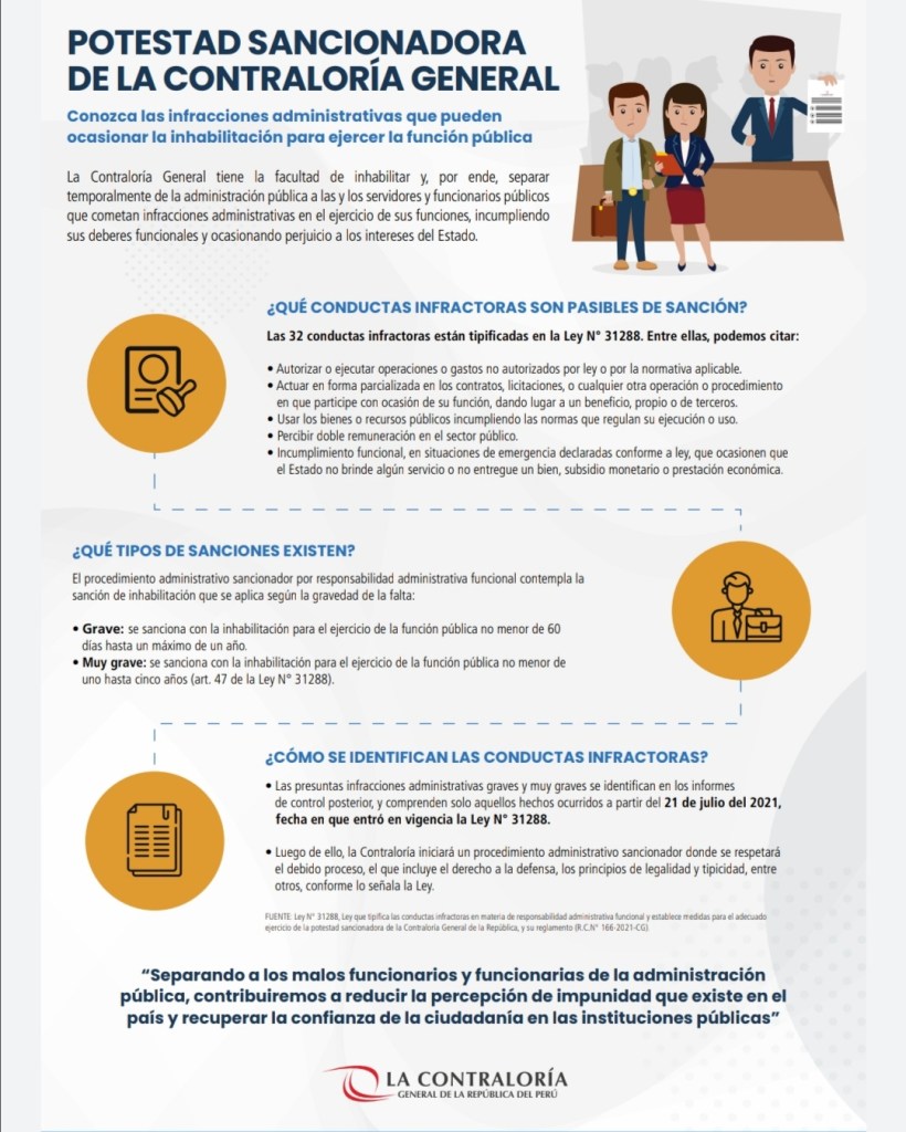 Como es de conocimiento público, el pasado 20 de julio, el Congreso de la República promulgó la Ley N° 31288, Ley que tipifica las conductas infractoras en materia de responsabilidad administrativa funcional y establece medidas para el adecuado ejercicio de la potestad sancionadora de la Contraloría General, la misma que fue reglamentada el 21 de agosto pasado por la Entidad Fiscalizadora Superior.