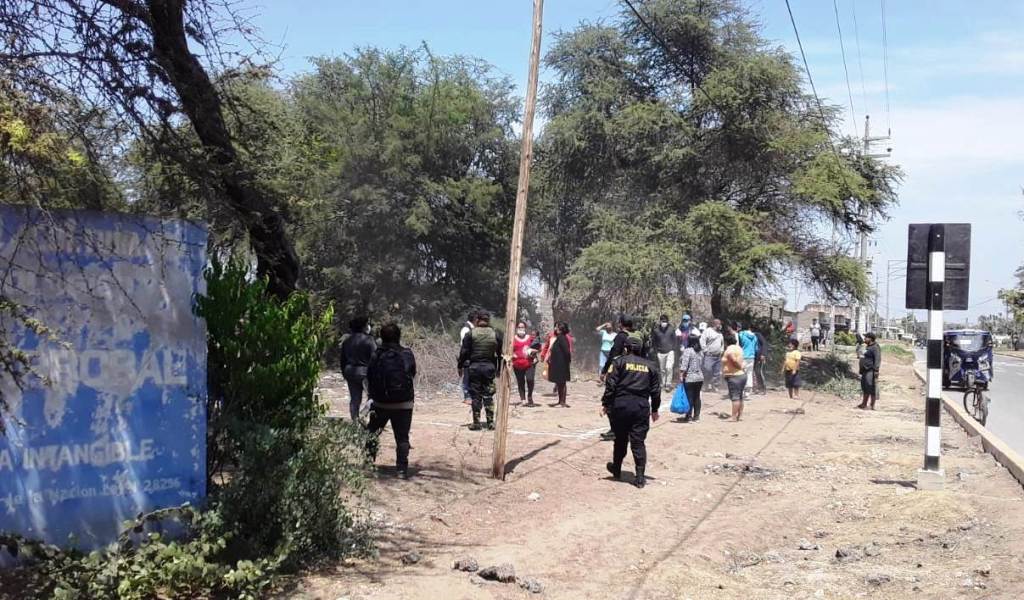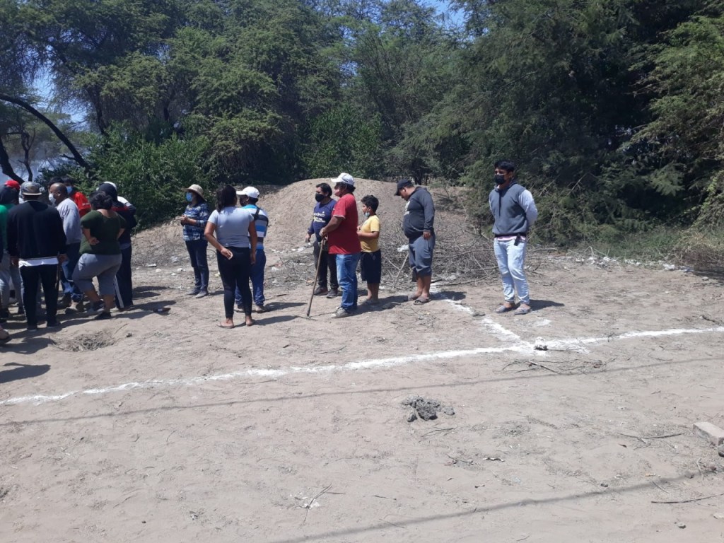Efectivos de la Comisaría de Pucalá en compañía del arqueólogo Ernesto Zavaleta, personal de seguridad Cipriano Nujar en representación del museo y el abogado Chuchucán de la dirección Desconcentrada de Cultura Lambayeque, se constituyeron en el lugar ubicado en el cruce de la pista del sector algarrobal y la pista con dirección al grifo Pucalá, donde sé encontraron con la sorpresa de que el terreno había sido invadido por un grupo de desconocidos.