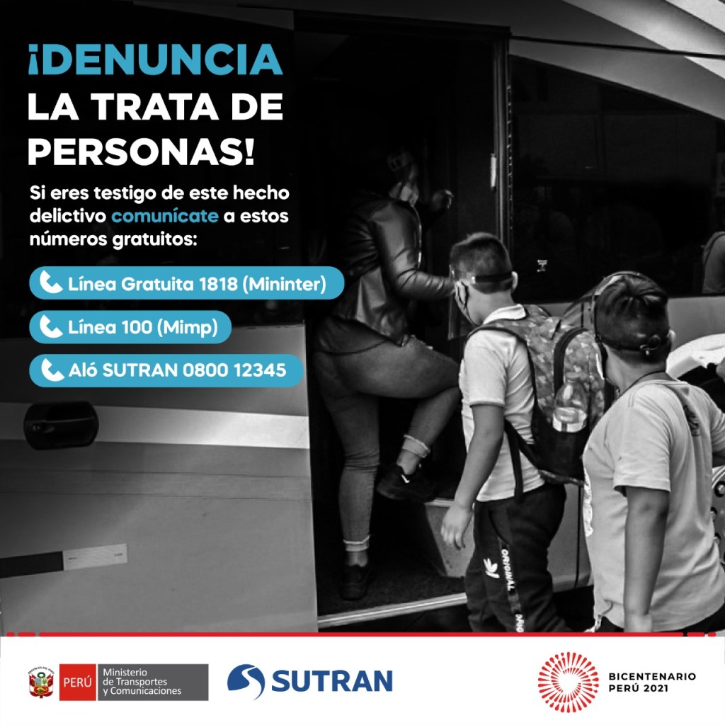 La lucha contra la trata de personas no se detiene. En un trabajo articulado con la Fiscalía Especializada en Trata de Personas, el Ministerio de la Mujer, el Ministerio del Interior, la Policía Nacional del Perú (PNP) y la Superintendencia Terrestre de Personas, Carga y Mercancías (Sutran) se desarrollaron operativos de manera simultánea en terminales terrestres y carreteras a nivel nacional, con el objetivo de combatir esta actividad delictiva que afecta principalmente a mujeres, niñas, niños y adolescentes de todo el país.