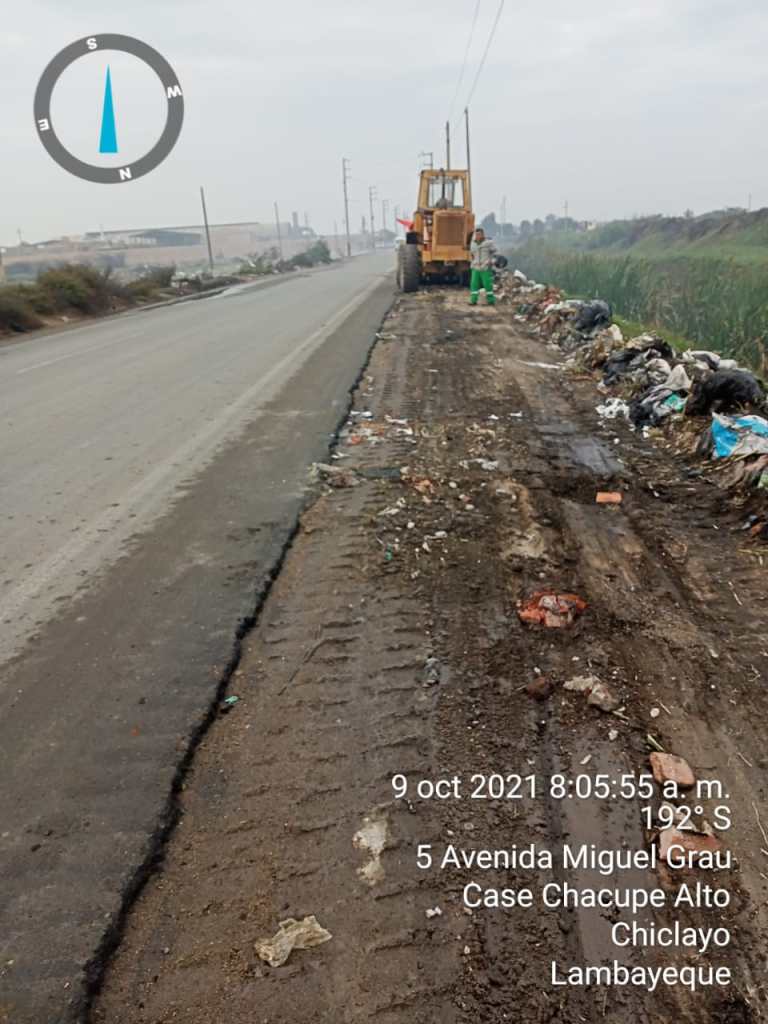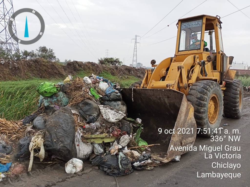 La Municipalidad distrital de La Victoria, a través de la Jefatura de Limpieza Pública ha recogido hoy 18 toneladas de basura y desmonte en la Av. Miguel Grau, carretera que conduce a Monsefú, Ciudad Eten y Puerto Eten, desde la Av. Gran Chimú hasta el sector Campamento, en Chacupe Alto.