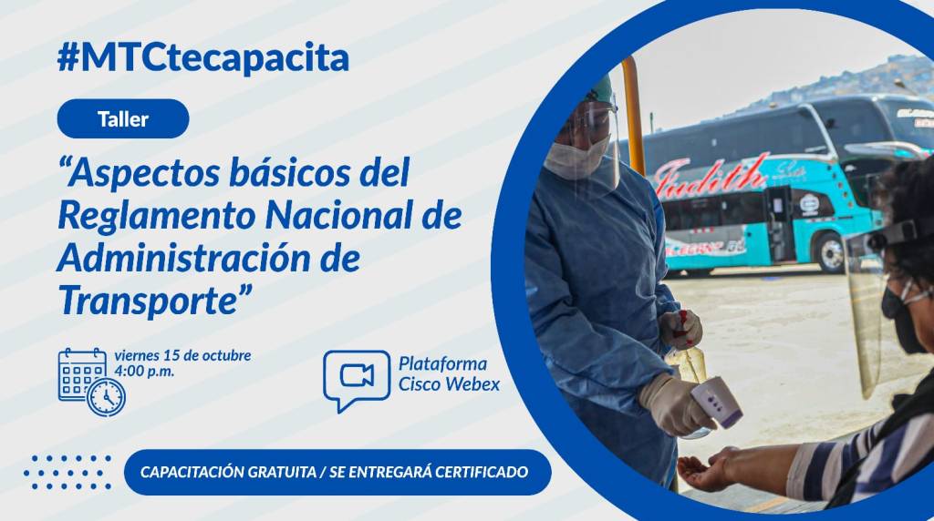 Como parte de su programa “MTC te capacita”, el Ministerio de Transportes y Comunicaciones (MTC), a través de la Dirección de Políticas y Normas en Transporte Vial, realizará el 15 de octubre el taller “Aspectos básicos del Reglamento Nacional de Administración de Transporte”.