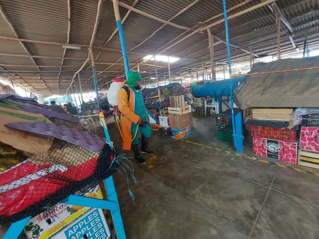 El Gerente de Servicios Públicos, Jorge Capuñay ha señalado que se busca prevenir la contaminación en estos centros de abastos, ahora cuando se ha informado de la presencia de algunos casos de la nueva variante del Covid 19 y prevenir al contagio en los mercados del distrito con la desinfección y fumigación.