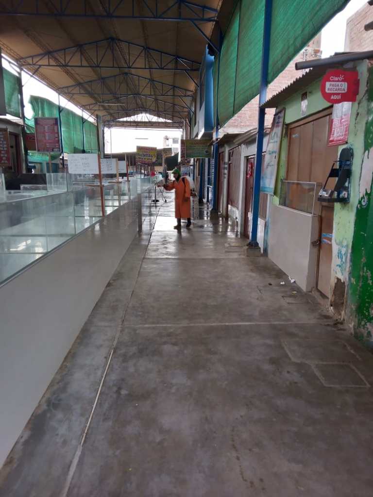 El personal inició la desinfección de los diferentes puestos de venta de alimentos de los mercados de Cristo Rey, Mercado AZ y hoy continuará en el Mercado Los Incas, Antenor Orrego y Yortuque.