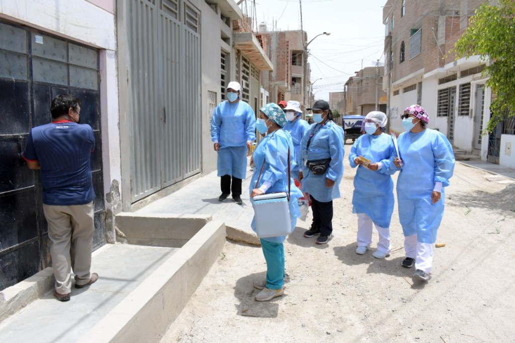 La Gerencia Regional de Salud Lambayeque, continúa la estrategia de vacunación contra la COVID-19 casa por casa, en esta oportunidad, las brigadas iniciaron su recorrido por diferentes pueblos jóvenes de Chiclayo. La actividad, está planificada del 25 al 29 de octubre en 15 sectores de la ciudad y colocan stickers al exterior de las casas para identificar a las familias que ya completaron su protección.