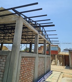 También, se evidenció que las vigas metálicas presentan medidas menores a lo consignado en el expediente y que la cobertura metálica del techo se encuentra fijada con pernos autorroscantes y no con tornillos tipo “J” a las correas metálicas como lo establecen los planos del expediente técnico.