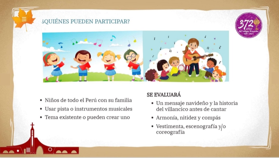 Bajo el lema «Si cantamos oramos dos veces; y, si es con la familia mucho mejor», la Parroquia Santa María Magdalena de Ciudad Eten (Lambayeque) organiza el Concurso virtual de villancicos denominado «Mi familia y yo te cantamos Niño Jesús».