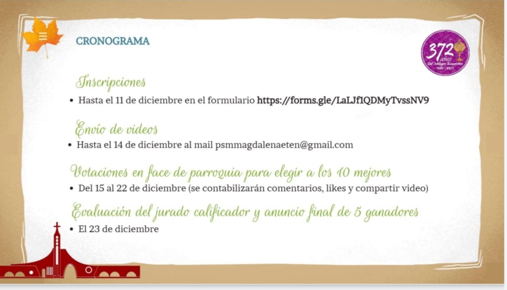 🌟 Los videos podrán enviarse hasta el 14 de diciembre al correo de la parroquia: psmmagdalenaeten@gmail.com.