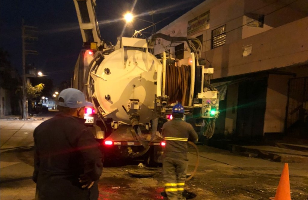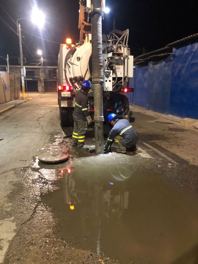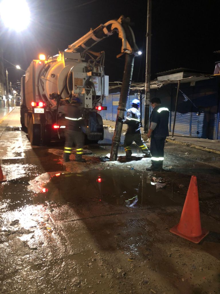 Continuando con las labores nocturnas de mantenimiento y limpieza de redes de alcantarillado y ante el constante colapso de desagües, personal operativo de mantenimiento de redes de EPSEL ejecutó labores de mantenimiento de buzones y succión de aniegos en las calles 7 de Enero (Cuadra 13 y 14), Leticia (Cuadra 3), y en la intersección de las calles Leticia con Amazonas, Leticia con Juan Fanning, y 7 de enero con Arica.