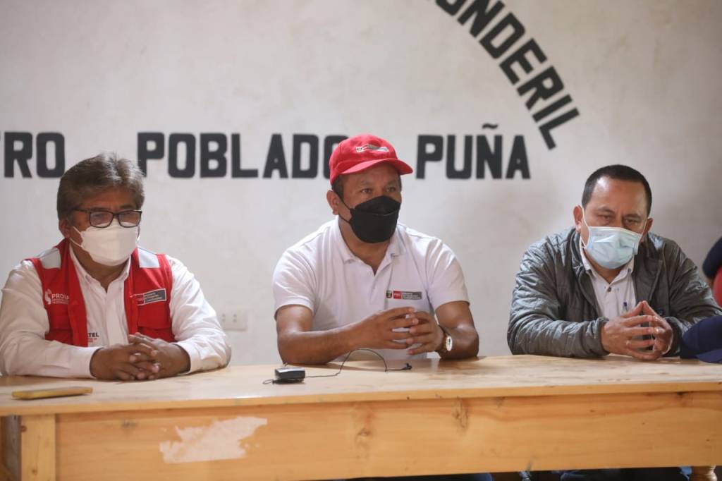 En la Casa Ronderil de Puña se llevó a cabo una reunión de trabajo, dónde participaron el ministro de Transportes y Comunicaciones, Juan Silva, el alcalde distrital de Tacabamba, Walter Ajip, el presidente de las rondas campesinas de Puña, Abelardo Castillo, el director ejecutivo de Pronatel, Jorge Tupac Yupanqui, y la población de Puña.