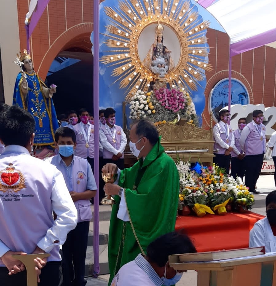 Con una misa solemne, oficiada por el párroco del lugar, Eleuterio Vasquez Gonzales, padre «Lute», en el atrio del templo ubicado en el parque principal de Ciudad Eten, se recordó así el portento ocurrido en 1649, en que la imagen del niño Jesús se apareció dos veces en la hostia consagrada, mientras se celebraba la misa del Corpus Christi.