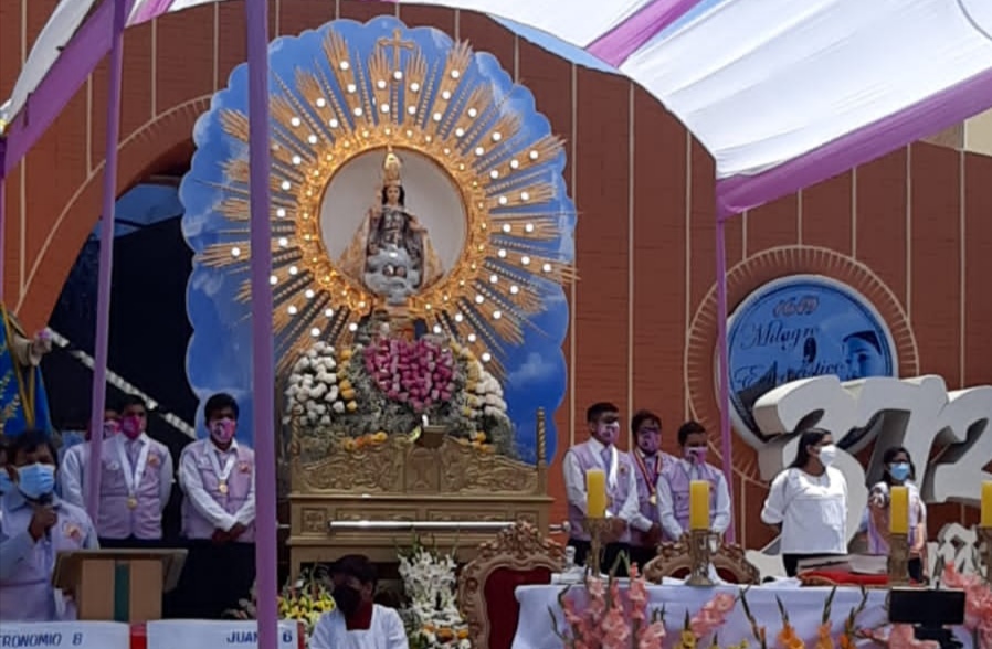 Con mucha fe y devoción, centenares de fieles católicos participaron hoy del día central de la Feria Internacional en homenaje a Santa María Magdalena y el Divino Niño del Milagro Eucarístico, que anualmente se lleva a cabo en Cuidad Eten, 20 kilómetros al suroeste de Chiclayo.