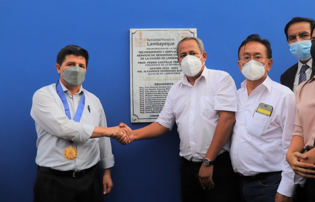 El presidente de la República, Pedro Castillo Terrones y el alcalde de la provincia de Lambayeque, Alex Rodríguez Alvarado inauguraron esta tarde la obra “Mejoramiento y Ampliación del servicio de Seguridad Ciudadana», ejecutada por la Municipalidad Provincial de Lambayeque con una inversión de 8.5 millones de soles.