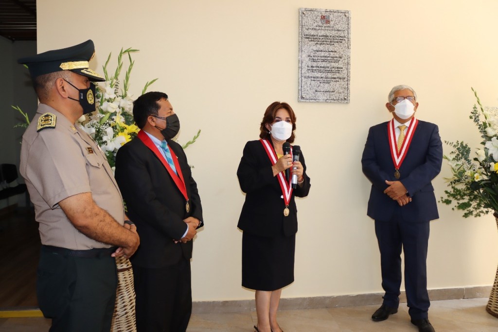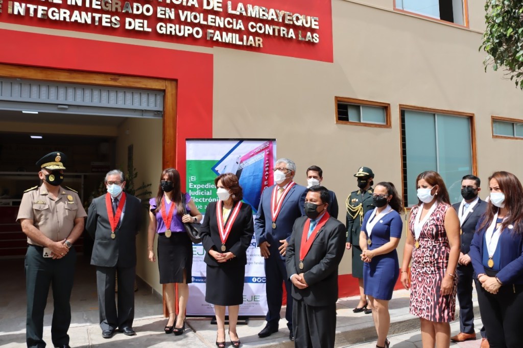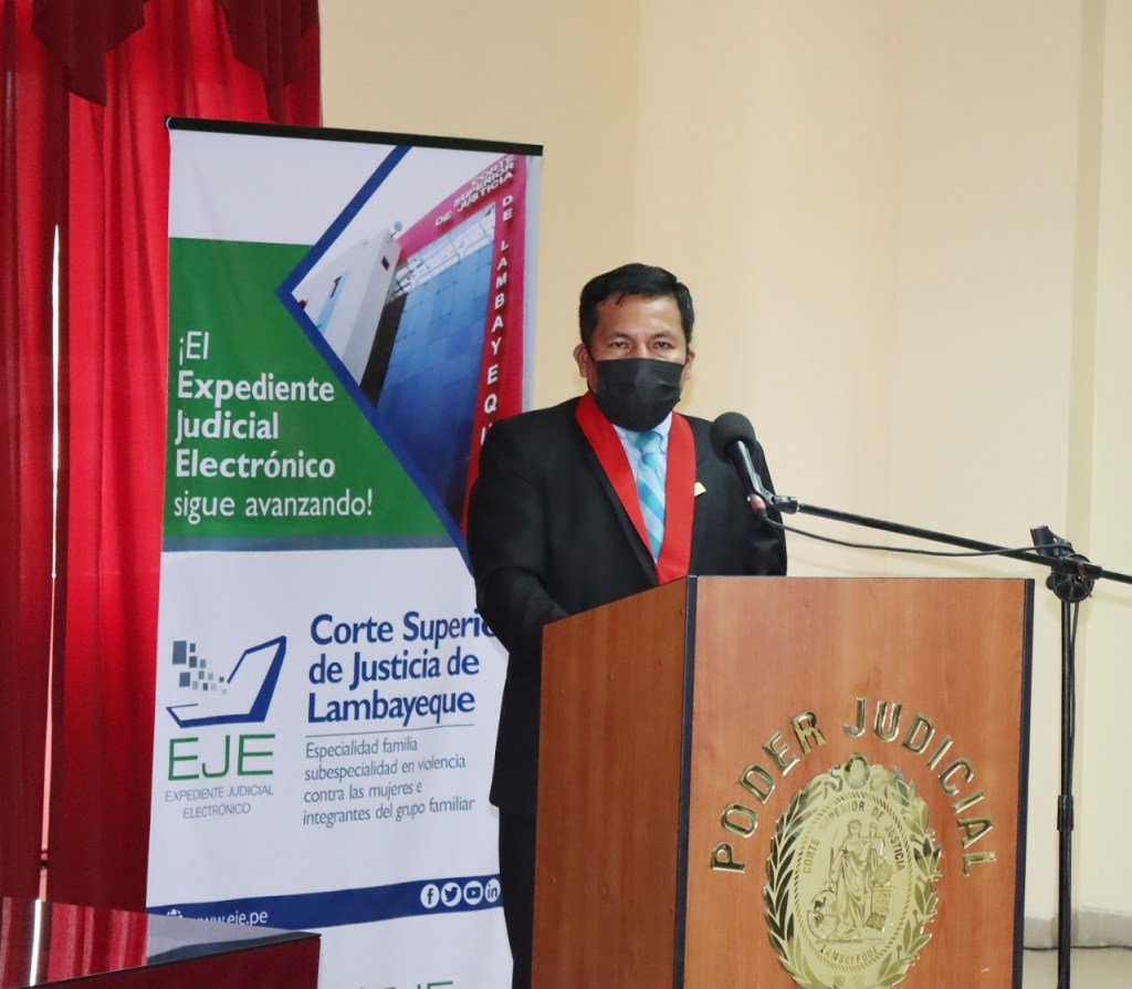 La titular del Poder Judicial, Elvia Barrios Alvarado, presidió hoy, de manera presencial, la implementación del Expediente Judicial Electrónico (EJE) y la Mesa de Partes Electrónica (MPE) en procesos de violencia contra las mujeres e integrantes el grupo familiar, así como el despliegue del sistema de la oralidad en los procesos civiles, en la Corte de Lambayeque.