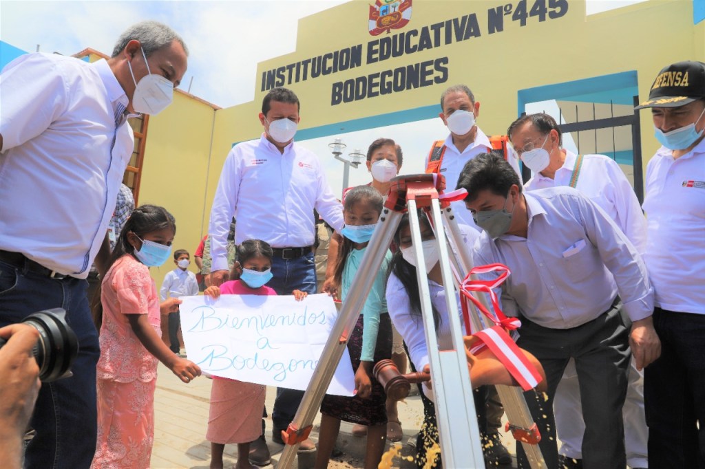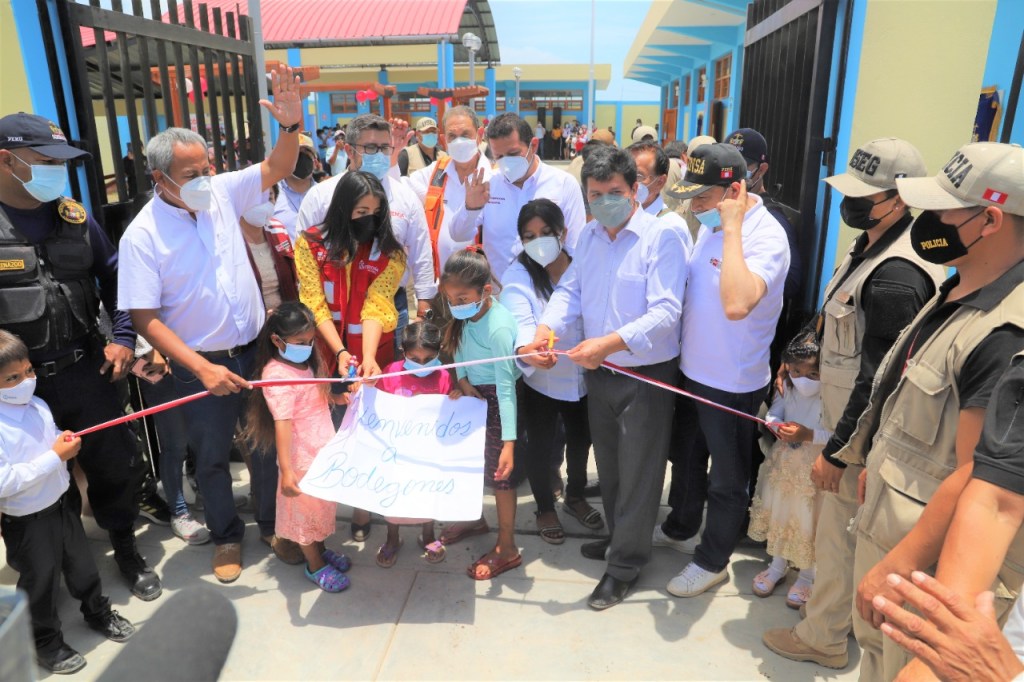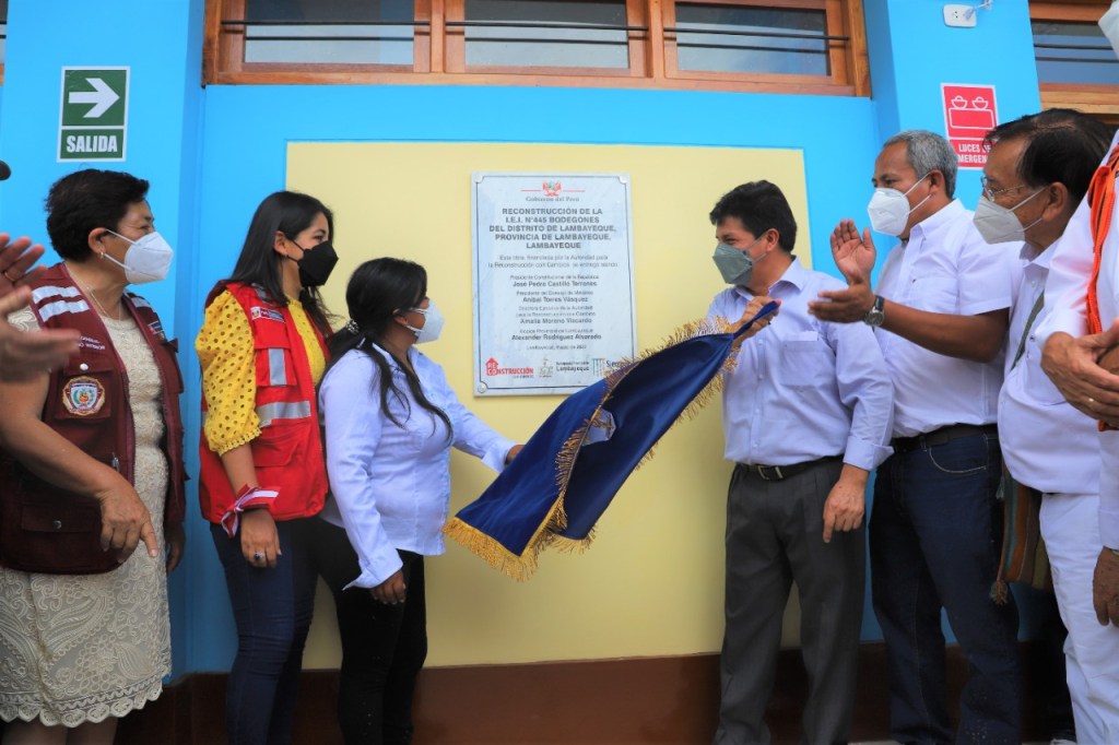 El presidente de la República, Pedro Castillo Terrones y el alcalde provincial de Lambayeque, Ing. Alex Rodríguez Alvarado inauguraron la obra de mejoramiento del servicio educativo de la institución educativa de nivel inicial N° 445 del sector Bodegones de Lambayeque.