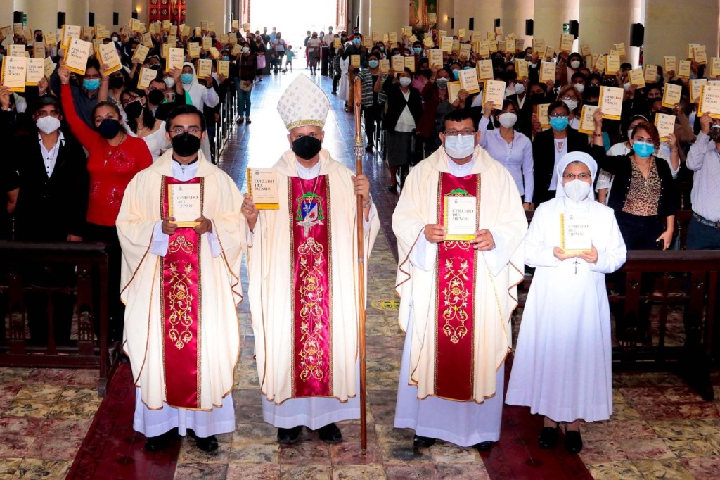 A dicho acto se invitó a los catequistas de las 50 parroquias que conforman esta jurisdicción eclesiástica, en el que el P. Fidel Purisaca presentó el Libro: “Cuidado del menir. Actividades educativas dirigidas a la comunidad”, el mismo que servirá para que los catequistas desarrollen las sesiones de catequesis, con materiales que ayudarán a los fieles al respeto de la dignidad humana, y sobre todo a la formación de la conciencia para actuar con respeto y consideración al prójimo.