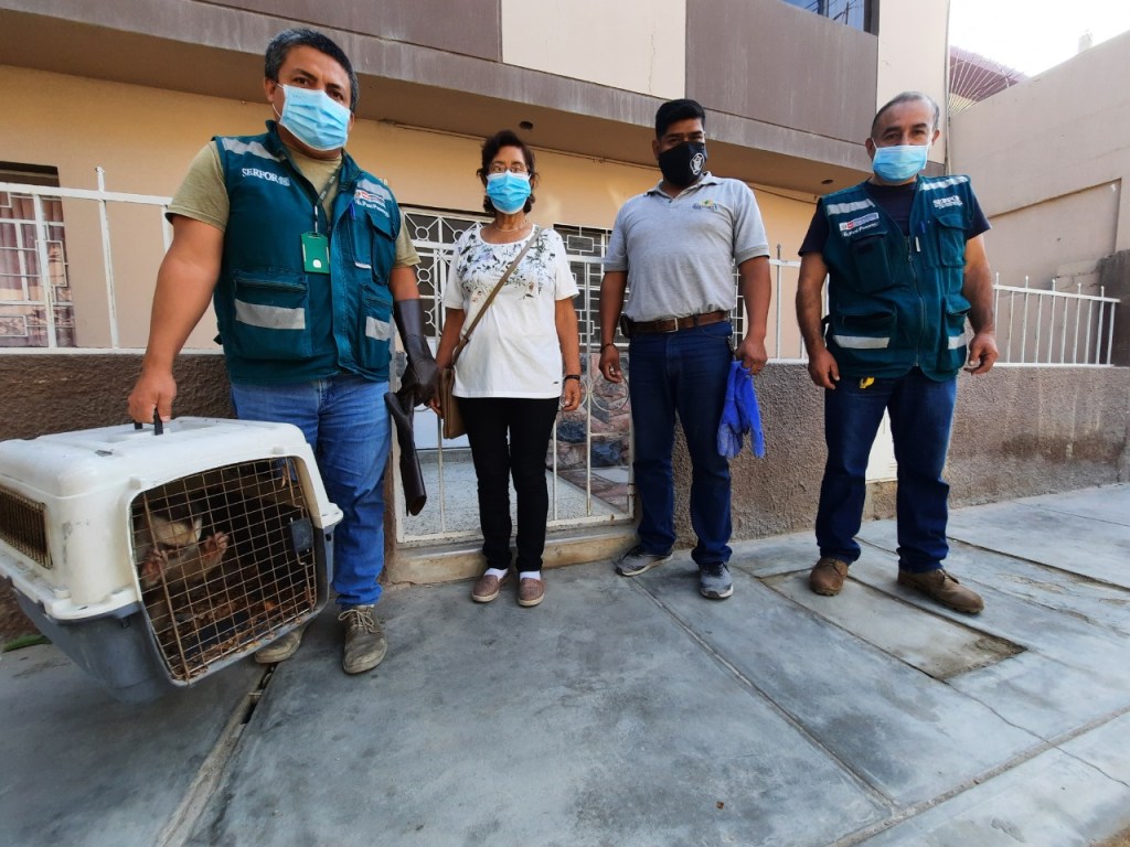 La captura del ejemplar se produjo luego de cinco días de seguimiento que contó con el apoyo de la Policía Nacional del Perú y del Serenazgo de la Municipalidad Provincial de Chiclayo, ante la solicitud de los vecinos quienes alertaron su presencia en los árboles aledaños a una institución educativa y el mercado Modelo de Chiclayo.