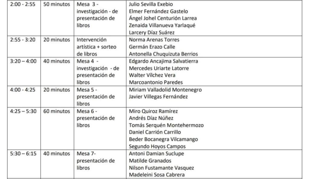 La poeta y profesora Socorro Granda Santamaría, presidenta de la institución, dijo mostrarse satisfecha de la aceptación a la convocatoria de parte de numerosos escritores e intelectuales lambayecanos que, además de exponer sus obras, participarán en mesas especiales en las que dictarán breves conferencias acerca de sus trabajos.
