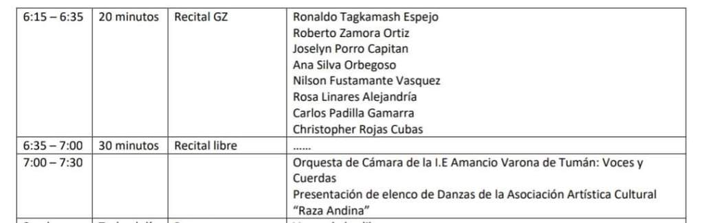 «Damos la bienvenida a cada escritor, poeta, narrador, investigador, artista plástico, declamadores, docentes, artistas que no dudaron en acudir al llamado del #clubdelecturageneracionz y poder juntos realizar esta maratónica actividad en favor de los pomalqueños. Pomalca, tierra del dulce encanto y milenaria tradición, los espera», remarcó la poeta gestora del evento.