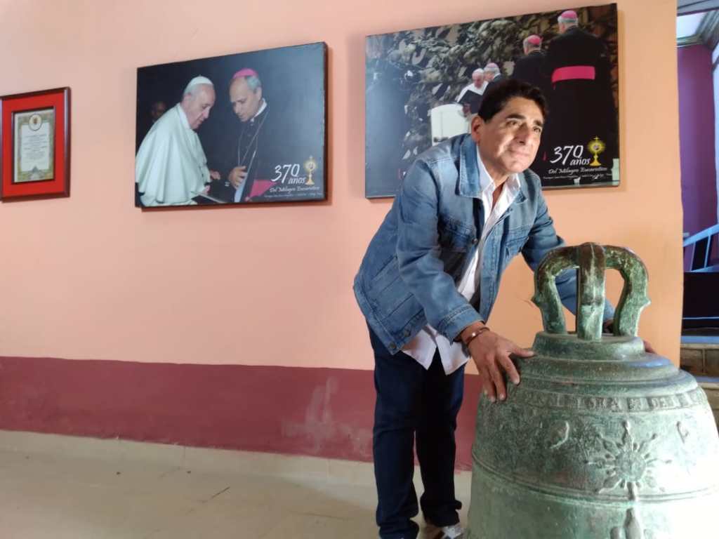 Carlos Alvarez se quedó maravillado con su visita al Altar Mayor que data del siglo XVIII y observó la antigua campana hecha en bronce que allí se custodia. Asimismo, felicitó a la Diócesis de #Chiclayo por haber conseguido el terreno para el Santuario con el soporte de la hermandad Santa María Magdalena y Divino Niño del Milagro Eucarístico. Tras recibir la bendición se retiró siempre con el corazón agradecido.