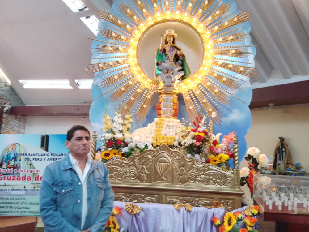 El artista Carlos Álvarez –devoto del Divino Niño del Milagro Eucarístico– visitó el templo Santa María Magdalena de #CiudadEten (ubicado en el parque principal) para desde aquí unirse a la gran Cruzada de Fe de millones de peruanos: