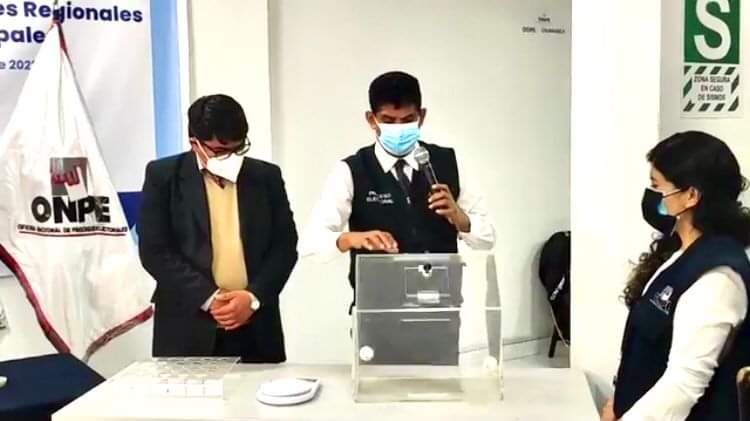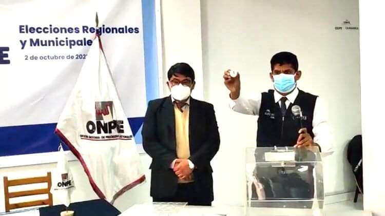 El acto se llevó a cabo contando con la presencia de representantes del Jurado Electoral Especial (JEE), del Registro Nacional de Identificación y Estado Civil (Reniec) y de la Defensoría del Pueblo, un personero del movimiento regional Frente Regional Cajamarca y la participación del notario público por Cajamarca Dr. Cristhopher Alejandro Quispe Cabrera, quien dio fe de la transparencia del sorteo.