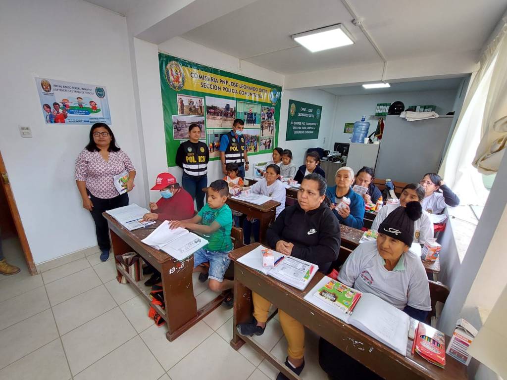 Una participante con 82 años de edad, es la más entusiasta de aprender a leer y escribir, tomando sumo interés durante el desarrollo de las clases dictadas por una profesora en las instalaciones de la Comisaría de José Leonardo Ortiz, al mando del comandante PNP Jackson La Torre.