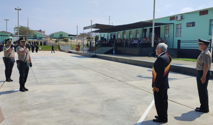El estado mayor de la PNP rindió los honores correspondientes al gobernador, quien a su vez saludó a la bandera de guerra de la institución policial y presidió la emotiva ceremonia donde se brindó un minuto de silencio por los héroes policiales caídos, en especial por quienes perecieron en la lucha contra el Covid – 19.