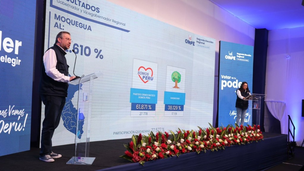 El jefe de la Oficina Nacional de Procesos Electorales (ONPE), Piero Corvetto Salinas, presentó, minutos después de las 9 p.m., el primer avance de resultados oficiales de la segunda elección regional realizada en 9 regiones del país, proceso que calificó de exitoso.