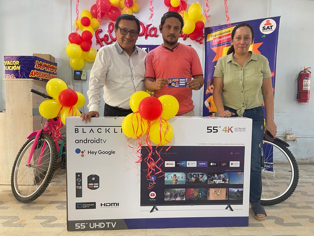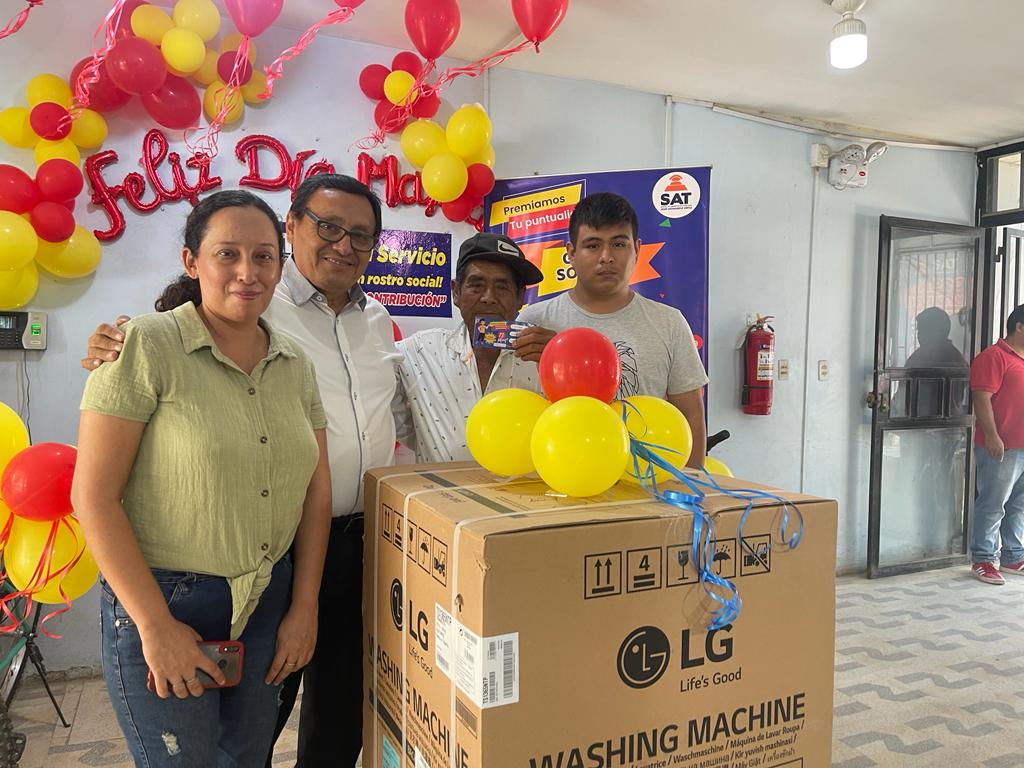 El sorteo se realizó en el marco del “Día de la Madre” y los ganadores fueron Lorenzo Santisteban Sandoval con una lavadora; su ticket fue el N° 000990 y el contribuyente vive en Atusparias. El televisor de 55 pulgadas fue para Victor Alarcón Gálvez de la Upis Miraflores, con el ticket N° 000442. El tercer premio fueron dos bicicletas y la ganadora fue Elsa Peche Baldera, del pueblo joven Las Mercedes, con el ticket N° 000962.