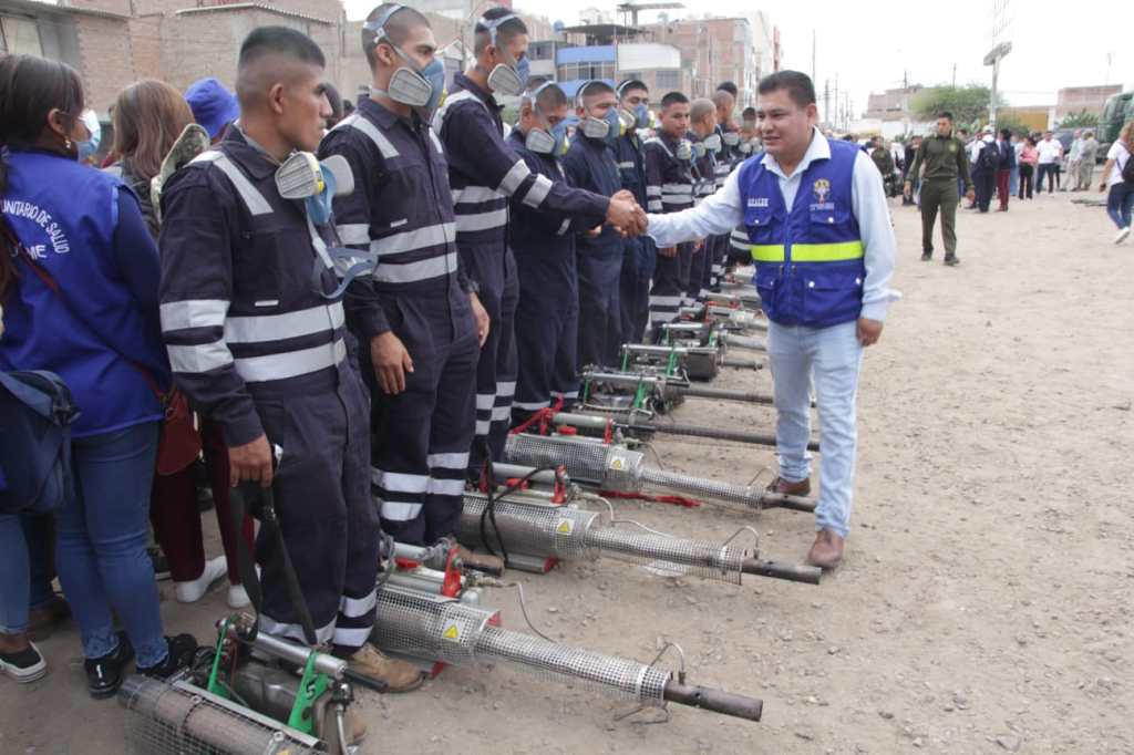El gobernador, Jorge Pérez reveló que, pese a que no llegaron 200 motofumigadoras anunciadas por el Ministerio de Salud, comenzaron las labores con las 70 disponibles. Posteriormente se desplazarán a Leonardo Ortiz y Chiclayo, estimándose en este último una intervención en 70 mil viviendas. Destacó la sinergia con la municipalidad, centro de Salud, hospitales, empresa pública y privada, ejército, policía, gerencias de Educación, Salud y Agricultura.