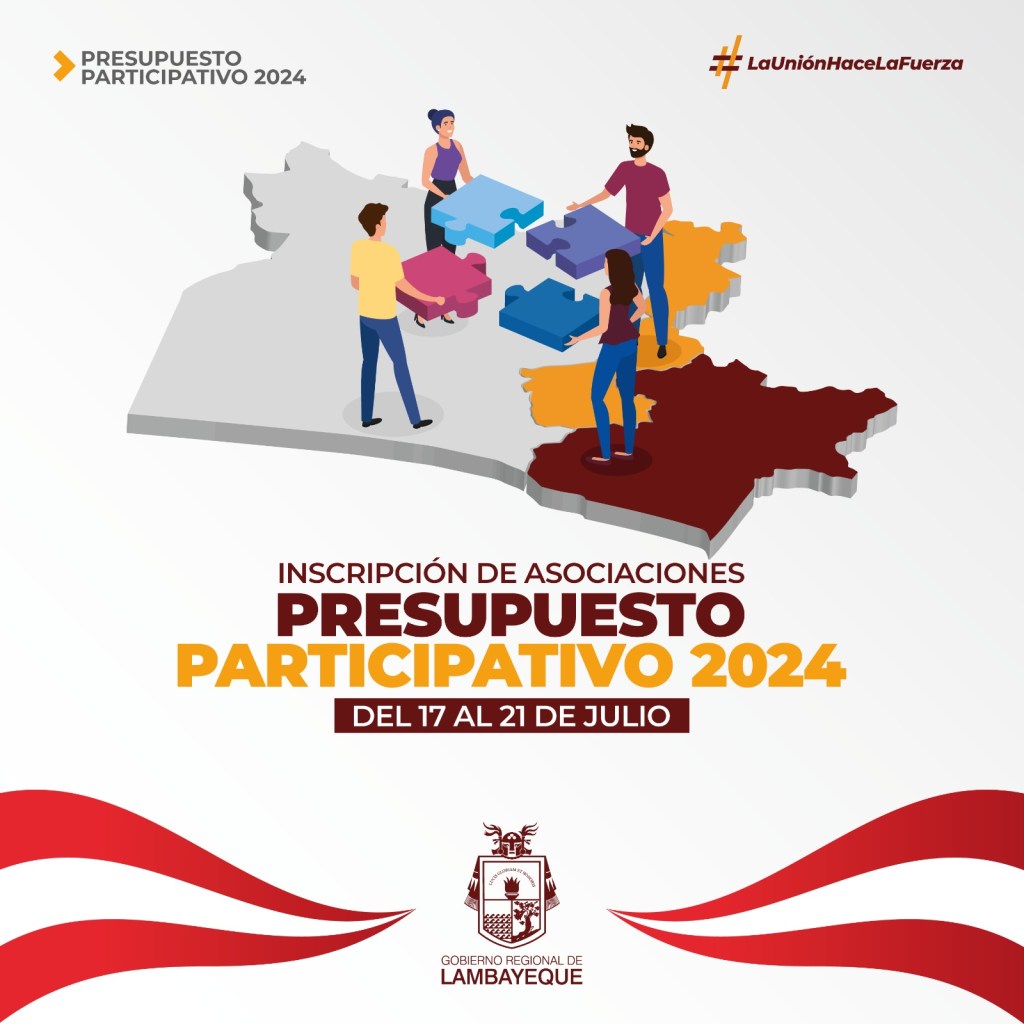 El Gobierno Regional de Lambayeque viene invitando a las organizaciones de la sociedad civil a inscribirse para que puedan participar en el proceso de elaboración del presupuesto participativo 2024, convocado por decreto regional.