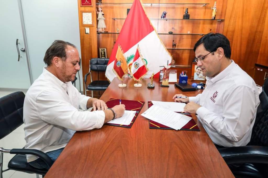 El convenio fue firmado por el gobernador regional, Jorge Pérez; y el alcalde del distrito, Enrique Navarro Cacho Souza.