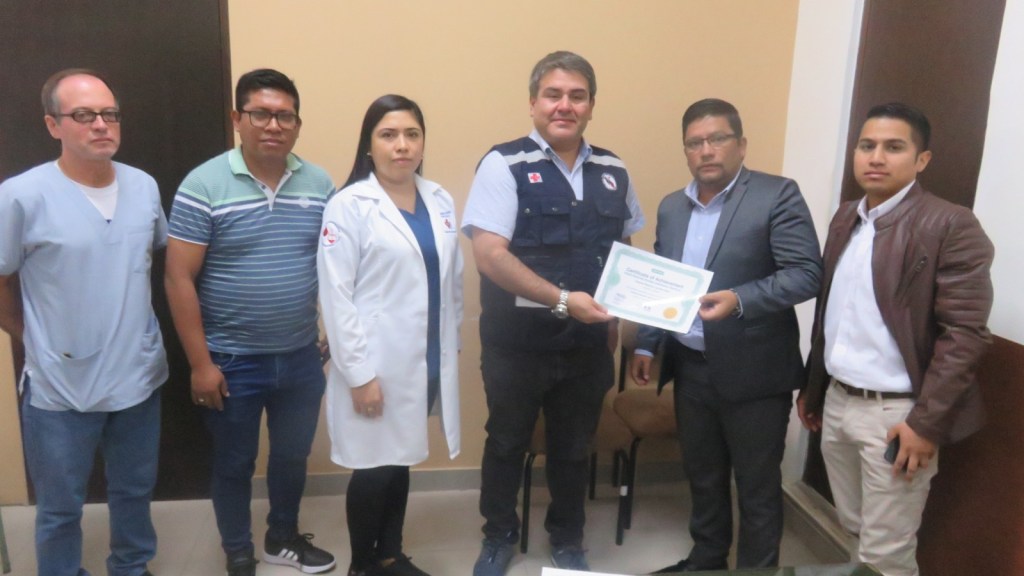 El reconocimiento fue entregado al doctor Juan Oriundo Verástegui, director del hospital Las Mercedes; y a la doctora Carmen Sánchez Lecca, jefa del Departamento de Laboratorio Clínico por el ingeniero Luis Dávila y el técnico médico Luis Valdivieso, representantes de Bio Rad laboratorios.