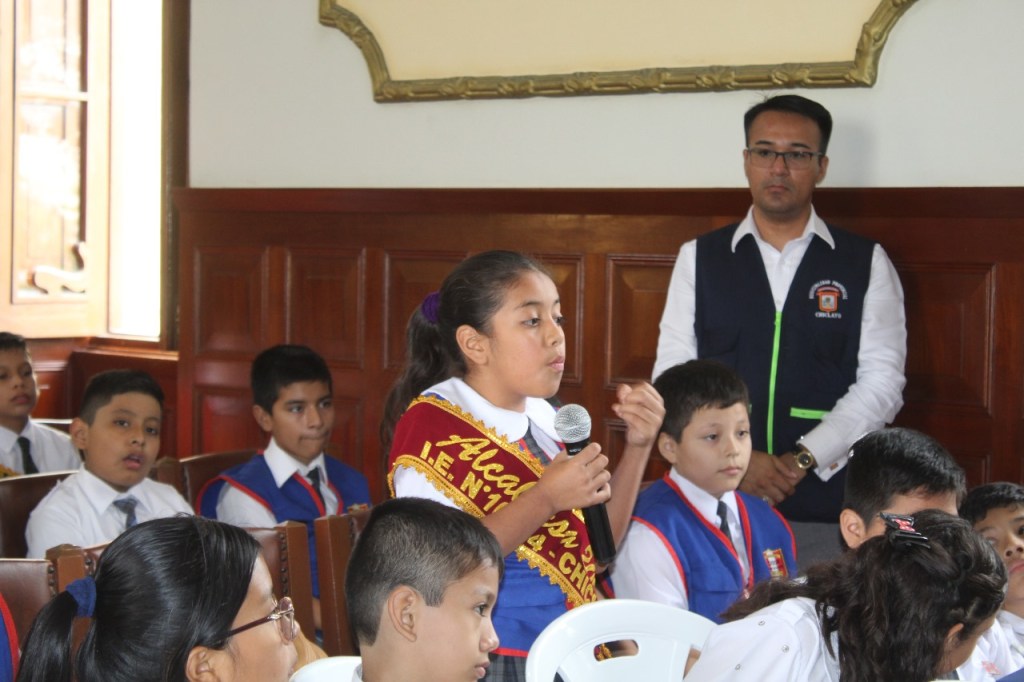 Trabajar de manera conjunta los ejes de prevención de la violencia familiar y la cultura ambiental, son dos de los compromisos asumidos por la Municipalidad Provincial de Chiclayo, en el Primer Encuentro de Autoridades Municipales Escolares que se desarrolló en el palacio municipal. En este encuentro, dirigido en la fecha para educación primaria, participaron 120 niños entre alcaldes y regidores, además de sus docentes, directores y padres de familia.