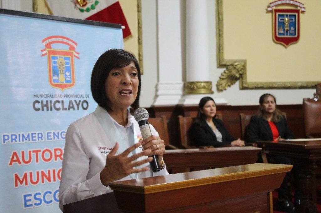 La alcaldesa de Chiclayo, Janet Cubas Carranza, presidió la actividad y explicó que se busca construir, de manera conjunta, una política a favor de la niñez, en los ejes de prevención de violencia familiar, cultura ambiental, formación civil y espacios seguros.