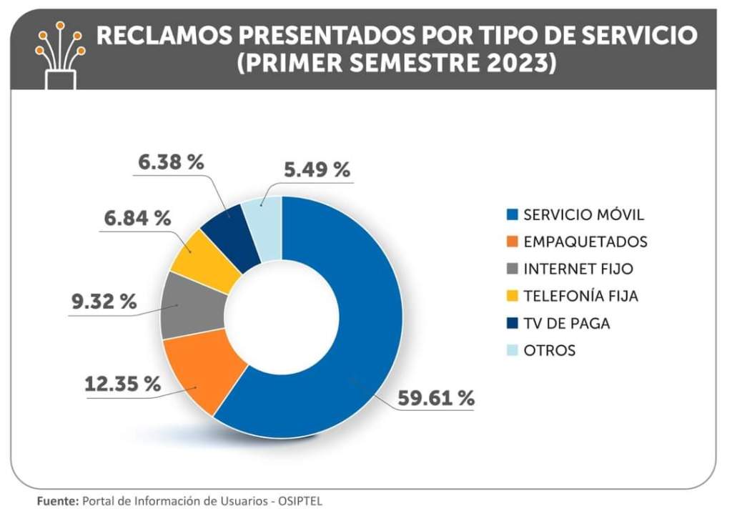 En el primer semestre de 2023 se registraron 921 258 reclamos presentados por los usuarios ante las empresas operadoras, en primera instancia, por inconvenientes con los servicios de telefonía fija, móvil, internet, televisión de cable, empaquetados (dúos o tríos) y otros; 22.12 % menos frente a los reclamos reportados en similar periodo de 2022 (1 182 976), informó el Organismo Supervisor de Inversión Privada en Telecomunicaciones (OSIPTEL).
