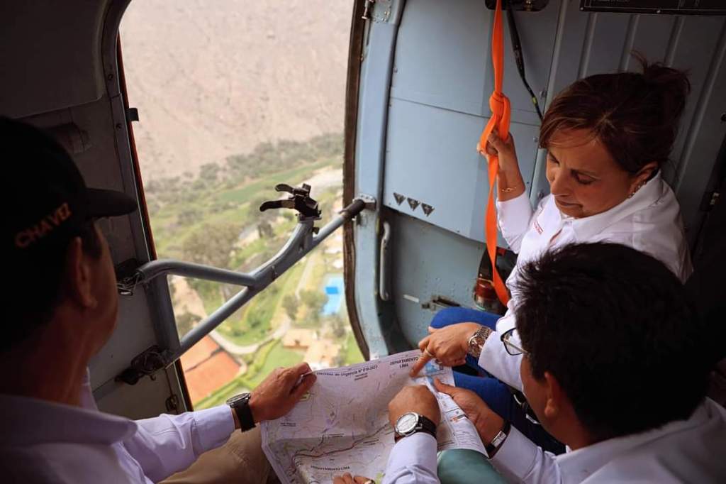 La presidenta de la República, Dina Boluarte, supervisó el avance de los trabajos de limpieza, encauzamiento y descolmatación de ríos de las cuencas lambayecanas, a fin de mitigar los efectos del fenómeno de El Niño. La jefa del Estado hizo un sobrevuelo de supervisión de las obras de descolmatación del cauce de los ríos Zaña y Reque. También, de las obras en el badén de la quebrada Querpón, ubicado en el distrito de Olmos.
