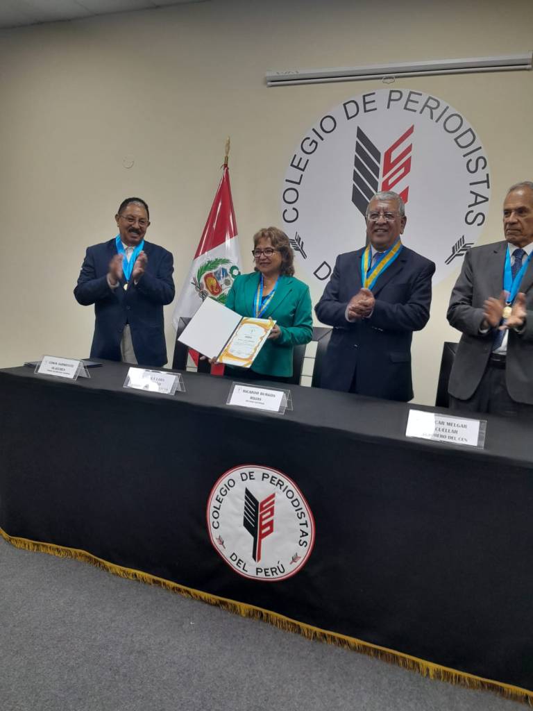 La periodista Karola Lara Manchego, recibe su credencial como nueva decana nacional del Colegio de Periodistas del Perú.