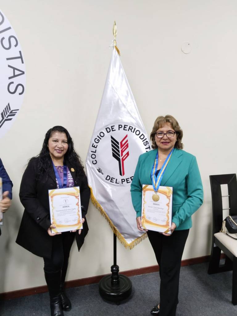 La periodista lambayecana Jesús León Ángeles, integra la directiva nacional del CPP. Aparece con la nueva decana, Karola Lara.