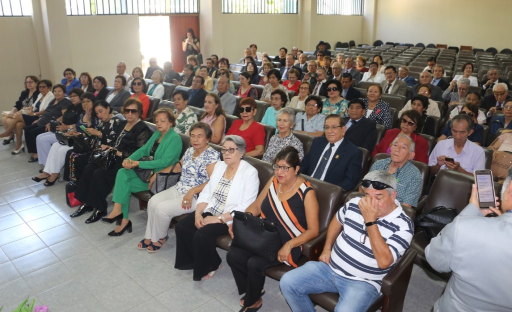 La comisión organizadora la integraron Mercedes Navarro, Antonieta Pflücker, Clara Medina, Luisa Rojas y Ramón Orrego. Se contó con el apoyo del magister Tomás Serquén Montehermoso, encargado de la Unidad de Seguimiento al Egresado de la UNPRG. En la ceremonia central estuvo el Dr. Alfredo Puican Carreño, en representación del decano; y el decimista Miguel Reynoso, quien declamó unas coplas inspiradas en las Bodas de Oro. (Escribe: Larcery Díaz Suárez. Fotos: Jorge Huamanchumo).