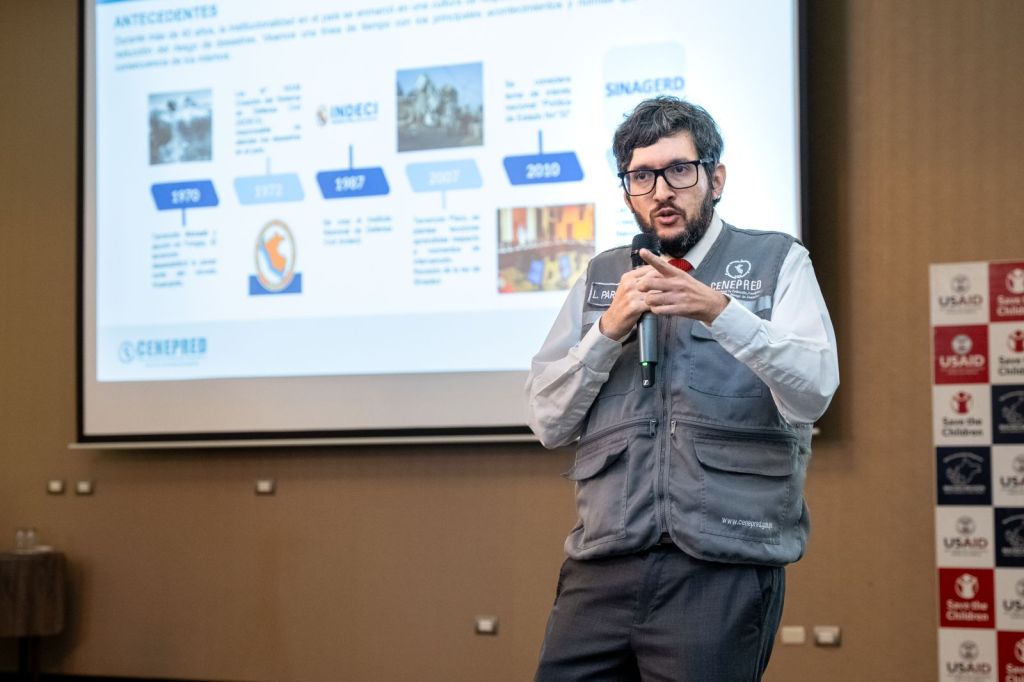 Esta iniciativa es posible gracias a la colaboración estratégica con el Instituto Nacional de Defensa Civil-INDECI y el Centro Nacional de Estimación, Prevención y Reducción del Riesgo de Desastres-CENEPRED, entidades claves en el Sistema Nacional de Gestión del Riesgo de Desastres-SINAGERED, cuyos funcionarios tuvieron a su cargo las exposiciones al respecto. El financiamiento de esta actividad es proporcionado por BHA/USAID. (Fotos Miguel Arreátegui).