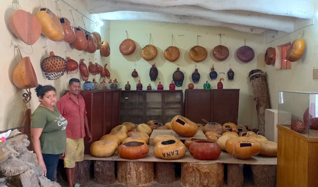 Haciendo un recuento actualizado de la muestra ya instalada se cuenta con 4 arpas cucas (de cuerdas) 31 shekeres (con redecillas y semillas); 3 angaras y 3 tamborecos y 63 checos. En total son 104 objetos sonoros. El modelo más antiguo recreado es el tamboreco, (que es raspador y tambor de madera simultáneamente) documentado en el libro de Martínez de Compañón del siglo XVIII. Y las imágenes del checo están en la obra pictórica de Ignacio Merino a mediados del siglo XIX.
