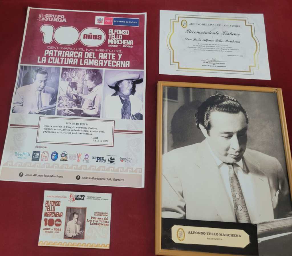 El Archivo Regional de Lambayeque, custodia la colección denominada «Jesús Alfonso Tello Marchena» gracias al aporte de su hijo Alfonso-Chocho Tello Gamarra. El homenaje fue organizado por la Dirección Desconcentrada de Cultura Lambayeque y la asociación cultural «Grupo Yunga» y se desarrolló en una nutrida noche cultural con presentaciones artísticas y con asistencia de intelectuales, poetas y público en general.